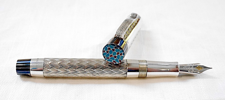 The top of the line of Conway Stewart pens was the Metal Writer series. They have an imposing weight and presence. This pen is design #RR1 and is #11 of 18 made. The pen is solid sterling silver with mokume gane finials, each unique. Using a cartridge/ Converter fill, this pen is new and in-used. R52
